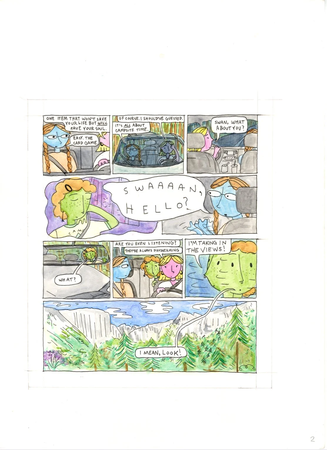 Freshly graduated from college, Swan and their two childhood bestfriends, Clare June and Mary, embark on the Yosemite backpacking adventure they’ve been dreaming of since elementary school. Swan is an introverted lover of nature who is trying to figure out what’s next. But with real life looming just beyond the bend, Swan must face the fact that the only thing waiting for them is a summer job at the farmer’s market. When a group of boys move in across the river, Swan’s introverted nature is put to the test. Will Swan open their heart and explore new connections? Or will they fall further into the existential doom of an uncertain future? Swan Song is a story of identity, yearning and friendship. 204 pages, watercolored.